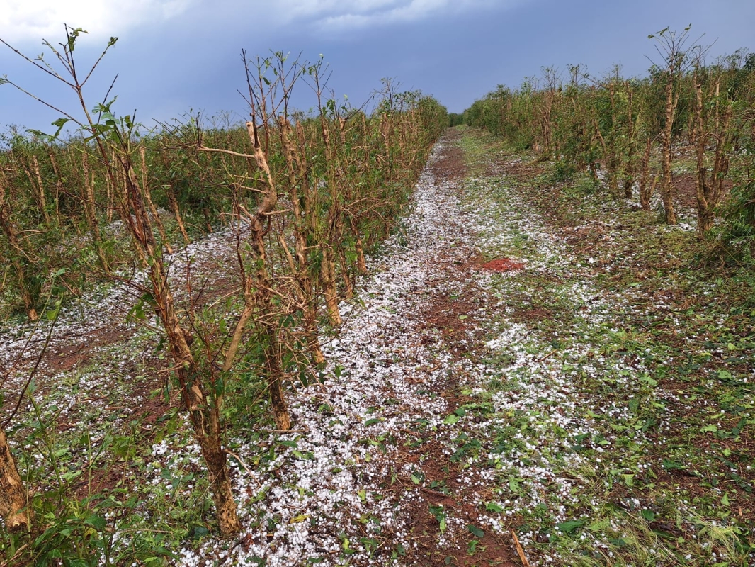Ferrareso reforça que os danos nas lavouras são graves, incluindo queda de folhas e frutos, quebra de ramos, entre outros impactos. “O granizo machuca a planta, que fica com as feridas abertas, podendo assim trazer doenças típicas, como: antracnose e phoma, que entram por esses machucados. E com o desfolhe, a chance da retenção de florada fica pequena”, destacou.