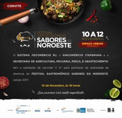 O Festival Gastronômico Sabores do Noroeste é um Oferecimento do Sistema Fecomércio RJ – Sesc | Senac. Apoio da Secretaria de Estado de Agricultura, Pecuária, Pesca e Abastecimento; e Sincomércio Itaperuna. Promoção e organização da B2B Empreendimentos.